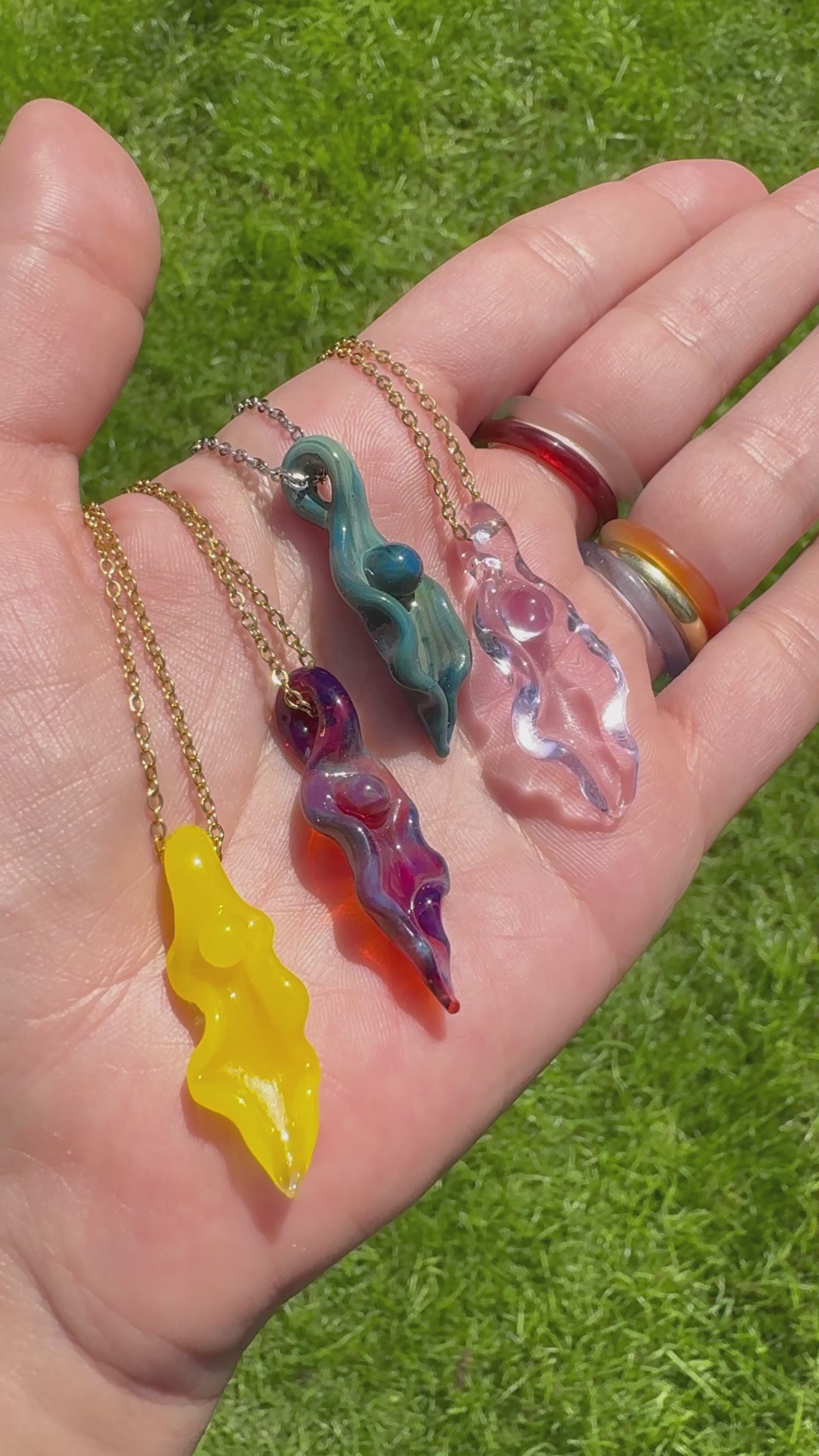Celebrate individuality and empowerment with the Vulva Charm Necklace, a striking piece of wearable art. This glass vulva necklace features a beautifully detailed vulva-shaped pendant elegantly the beauty of femininity. from borosilicate glass, the vulva pendant light and adds a vibrant touch to any outfit. Suspended on a durable chain, this necklace is perfect for making a bold statement expressing your unique identity. Wear it with pride or it to someone who appreciates artistry and self-expression.