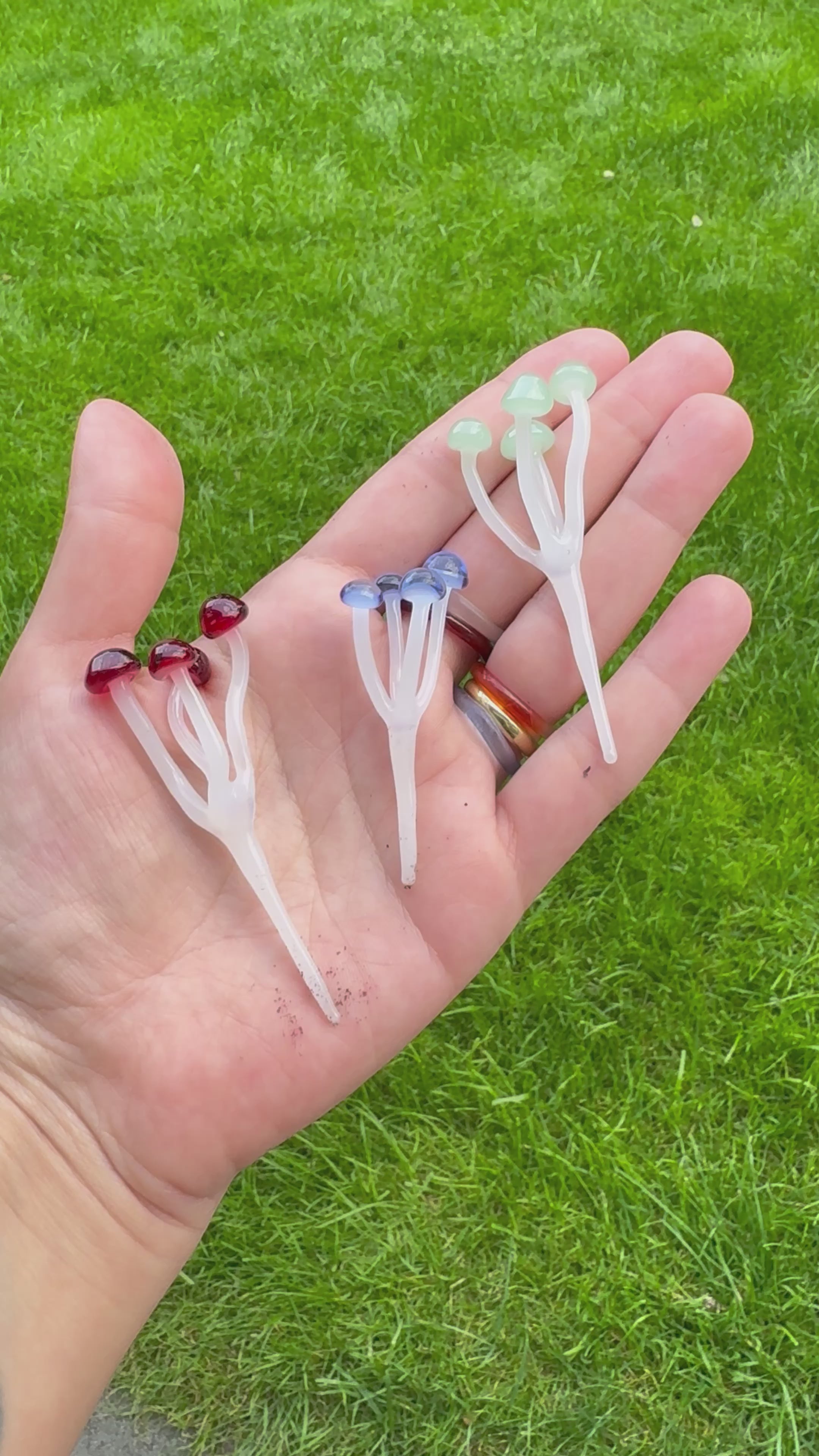 These cute glass mushrooms make the perfect companion for your plants. You can use them in your garden, terrarium, or in a flower pot, both outdoors and indoors. A perfect gift to mushroom lovers, great addition to flower pots.